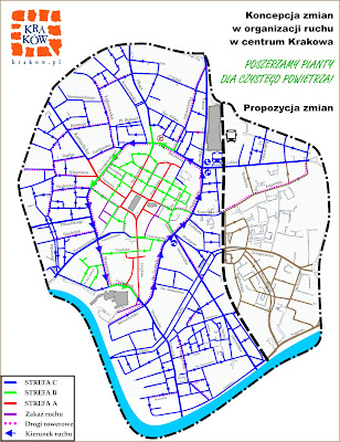 Zgodnie z powyższym obrazem, radni krakowscy postulują trochę zmian w komunikacji wewnątrz tzw. II Obwodnicy, szczególnie jeśli chodzi o trasę wokół Plant. Odniosę się tylko do kwestii jednokierunkowego ruchu wokół Plant, jako do najbardziej rewolucyjnego od wieków krakowskiego pomysłu.