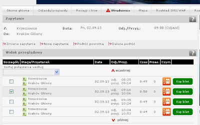 Dla przykładu: do Krakowa Głównego już od 2 września - 49 minut...