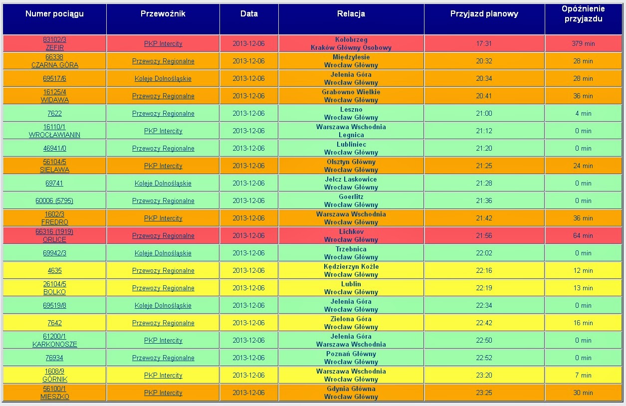 | Rozkład przyjazdów na stacji Wrocław Główny, stan na godz. 20:54 |