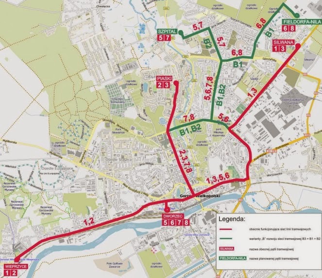 | Tak ma w przyszłości wyglądać sieć tramwajowa w Gorzowie Wielkopolskim (źródło: www.transport-publiczny.pl) |