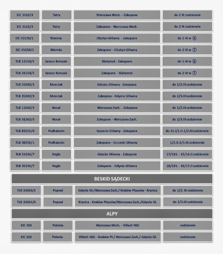 szczytu, 60 min w weekendy. Poza szczytem i kilkoma kursami wieczorem