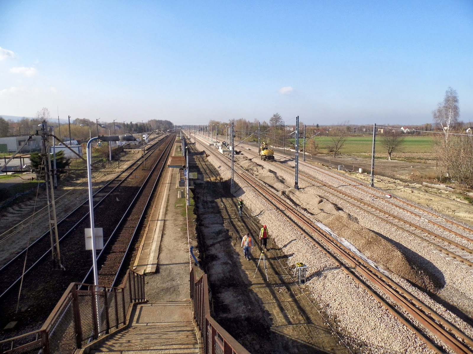 | Widok na perony stacji (tymczasowy peron 1, zbudowany w miejscu dawnego peronu 1, widać w głębi zdjęcia) w trakcie przebudowy |