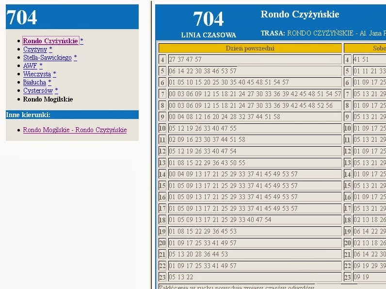 | Przedruk rozkładu ze strony www.mpk.krakow.pl |