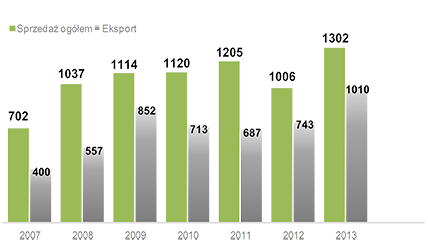 Rok 2013 był pod wieloma względami rokiem przełomowym. Po raz pierwszy bowiem polski producent dostarczył tramwaje na rynek zagraniczny, a dokładnie do Jeny, która nabyła pięć pojazdów. Ponadto w ubiegłym roku podpisano umowę na dostarczenie kolejnych 18 składów, tym razem do Brunszwiku. Pierwszy elektryczny autobus na eksport pojechał do austriackiego Klagenfurtu.