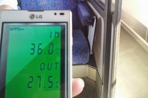 | Zdjęcie termometru w telefonie nadesłała do redakcji Kuriera Kolejowe sfrustrowana pasażerka (źródło: www.kurierkolejowy.eu) |