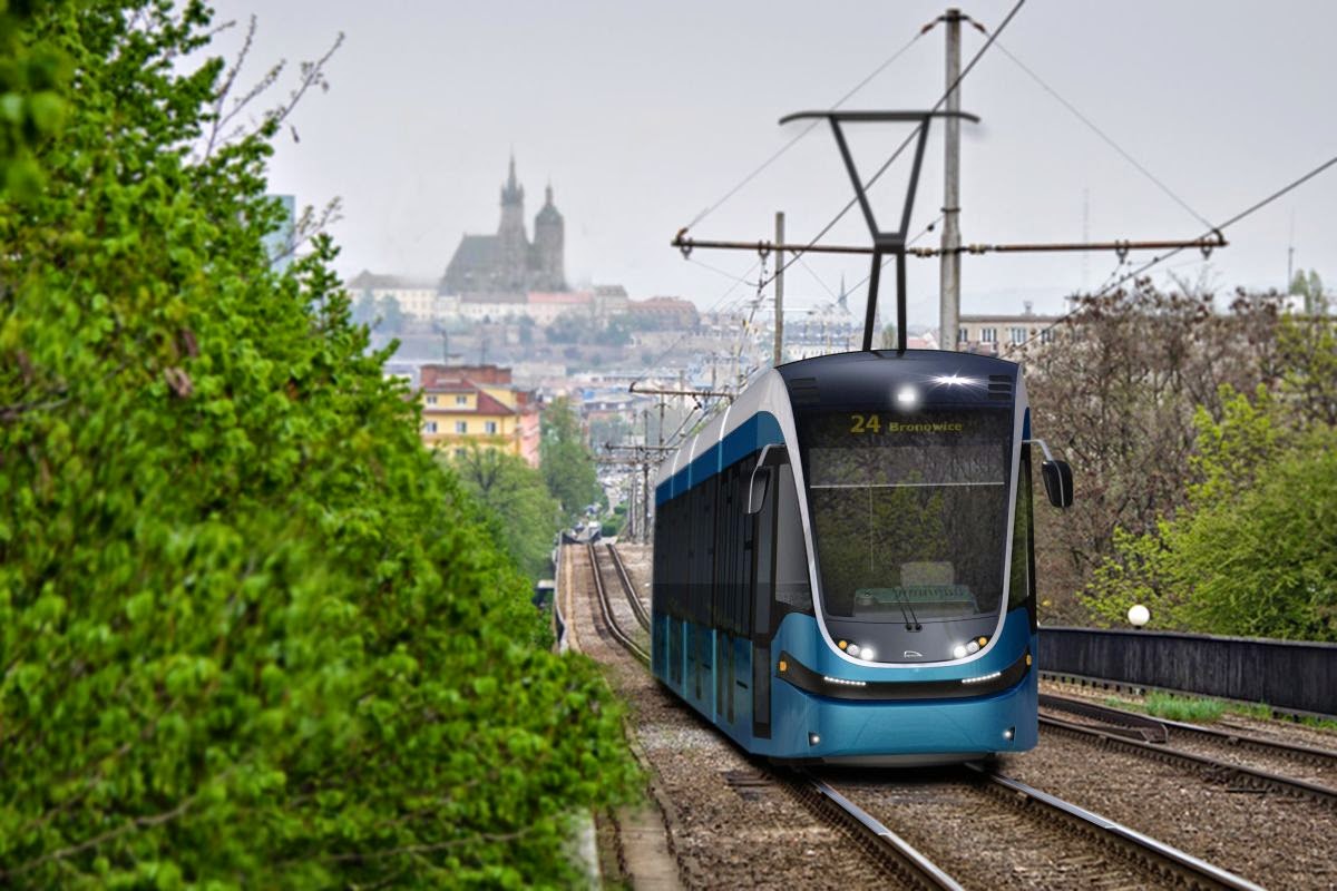 | Wizualizacja Krakowiaka. Z Brnem w tle (rys. Pesa Bydgoszcz, z zasobów www.rynek-kolejowy.pl) |