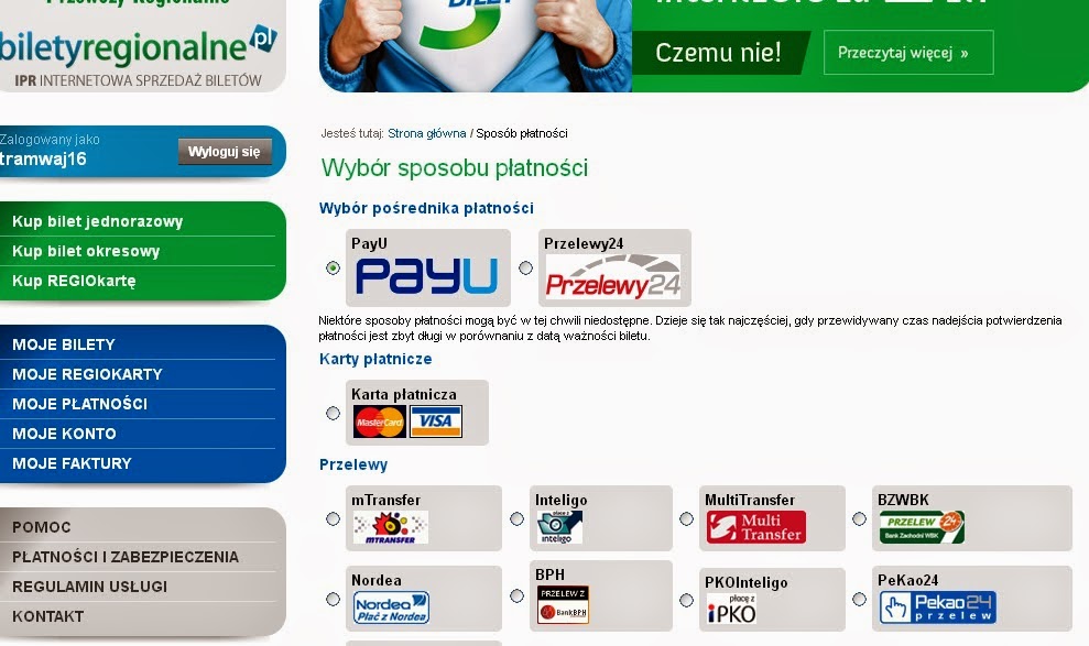 Następnie przechodzimy do płatności. Oferty "Połączenie w Dobrej Cenie", "Ty i Raz, Dwa, Trzy" oferowane są automatycznie tam, gdzie jest to możliwe. W przypadku odcinków objętych ofertami aglomeracyjnymi proponowane są dwie opcje: czasowa i odcinkowa (wyboru dokonuje podróżny).