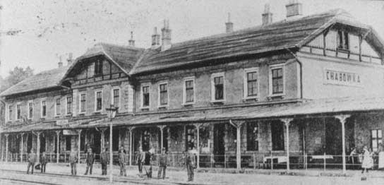 | Dworzec w Chabówce w latach 20. XX wieku. Fotografia ze zbiorów Miejskiej Biblioteki Publicznej w Rabce (źródło: www.parowozy.pl) |