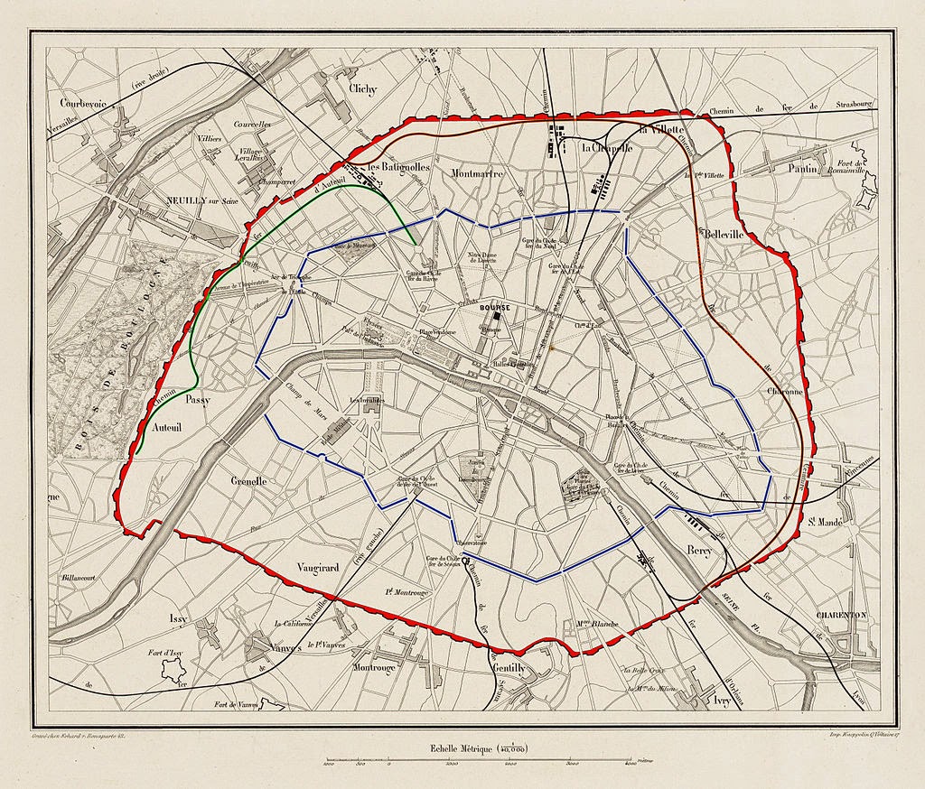 | Paryż w roku 1859, gdy istniała tylko część "małej opaski" (fot. ThePromenader, en.wikipedia.org) |