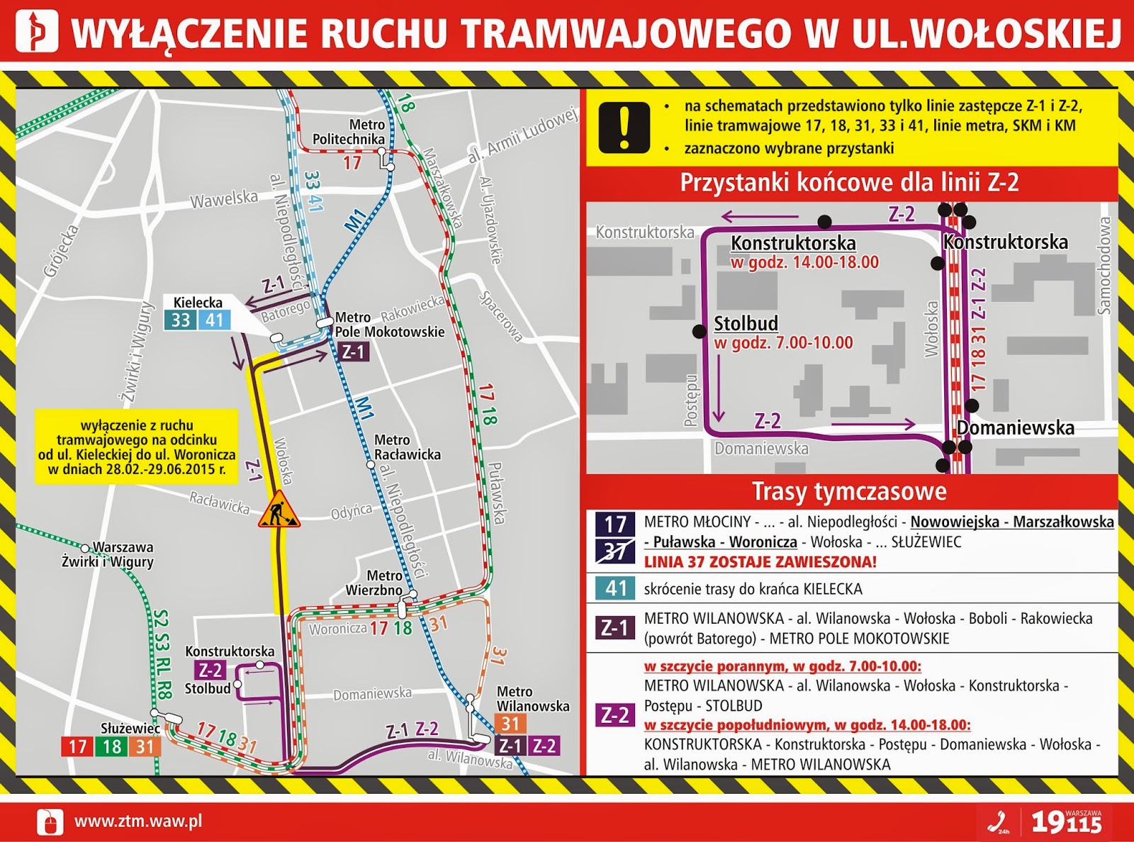 Żeby ułatwić pasażerom korzystanie z komunikacji miejskiej w tej części Warszawy uruchomione zostaną dwie zastępcze linie autobusowe: