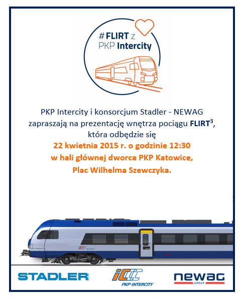 Już jutro, 22 kwietnia, na katowickim dworcu kolejowym odbędzie się prezentacja najnowszego nabytku PKP Intercity - składu Flirt 3. Przewoźnik serdecznie zaprasza wszystkich zainteresowanych pasjonatów, a także przedstawicieli mediów.