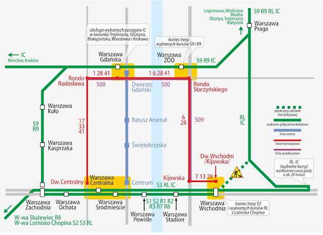 Wybrane pociągi PKP Intercity, kursujące pomiędzy Warszawą a Trójmiastem, Olsztynem i Białymstokiem oraz jadące w kierunku lub z Wrocławia i Krakowa, będą przejeżdżały przez stację Warszawa Gdańska (z pominięciem stacji Warszawa Zachodnia, Warszawa Centralna i Warszawa Wschodnia).