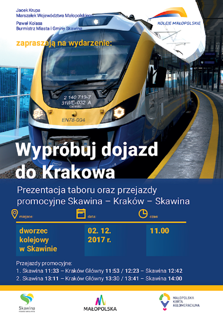 A od niedzieli, 10 grudnia, pociągi zaczną kursować już w relacji Skawina - Kraków - Miechów - Sędziszów. O tym jednak więcej nieco napiszę już wkrótce.