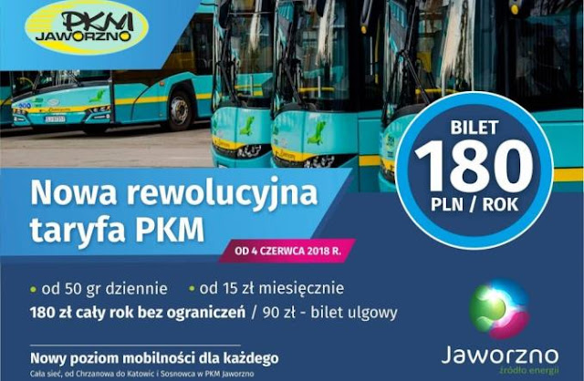 Taka kolej rzeczy ma w założeniu zachęcić jak najwięcej mieszkańców miasta do korzystania z autobusów PKM Jaworzno. Oferta przewoźnika nie jest zła, na ulicach miasta można spotkać coraz więcej nowoczesnego taboru, a rozkłady jazdy są całkiem znośnie zorganizowane. Miasto promuje nową taryfę z pomocą prostych haseł: od 50 gr dziennie, od 15 zł miesięcznie, 180 zł za cały rok na całą sieć bez ograniczeń.