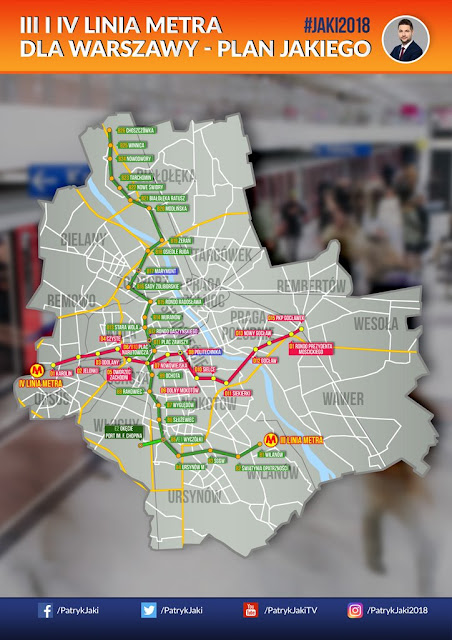 Kandydat na Prezydenta Warszawy z ramienia PiS chciałby zbudować dwie kolejne linie metra, i to w czasie zaledwie dwóch kadencji. O ile Jaki ma rację w kwestii podejścia do odnogi metra na Gocław (tam zresztą za chwilę dotrze tramwaj), o tyle jego III i IV linia metra są, lekko mówiąc, durnowate. III linia metra według Jakiego ma mieć ponad 31,5 kilometra i połączyć Choszczówkę przez Żerań, Żoliborz, Rakowiec, Służewiec i Ursynów z Wilanowem. W grę wchodziłoby nawet stworzenie odnogi do Lotniska Chopina, które... za kilka lat ma zostać zamknięte! Linia IV zaś, o długości niemal 20 kilometrów, prowadzić ma z Karolina przez Jelonki i Odolany do Dworca Zachodniego, dalej zaś przez Nowowiejską Mokotów i Siekierki na Gocław, skąd do stacji końcowej przy dworcu Warszawa Gocławek.