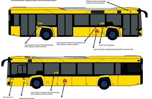 I tak, autobusy obsługujące regularne linie będą koloru żółtego. Te obsługujące linie specjalne, będą malowane w kolorze fuksji. Tramwaje pozostaną czerwone, zaś trolejbusy będą żółto-zielone. Autobusy w kolorze fuksji mają obsługiwać np. cztery linie pospieszne do lotniska w Pyrzowicach. To historyczna chwila, bo po raz pierwszy środki komunikacji miejskiej w całej aglomeracji będą miały jednolitą identyfikację wizualną. Szczególnie istotne jest to w przypadku autobusów, gdzie w ostatnich latach panowała istna wolna amerykanka.