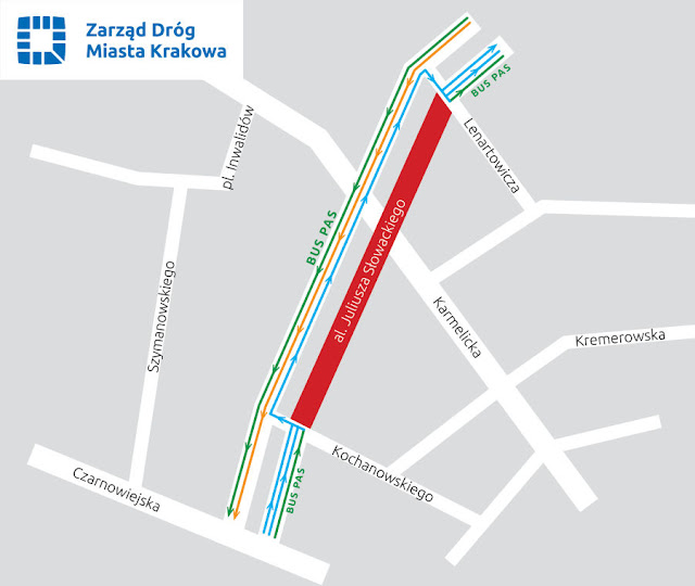 Przez około 3 miesiące wyłączona zostanie jezdnia w kierunku Nowego Kleparza, na odcinku od Kochanowskiego do Lenartowicza. W tym czasie cały ruch w obu kierunkach odbywać się będzie jezdnią po drugiej stronie. Do dyspozycji kierowców będzie po jednym pasie w każdym kierunku. Buspas w stronę Czarnowiejskiej będzie działał normalnie, natomiast ten w kierunku Nowego Kleparza niestety zostanie wchłonięty w pas ogólny. W zamian za to dodatkowe buspasy, które mają za zadanie nieco przyspieszyć poruszanie się autobusów na ciągu ATW, wyznaczone zostaną na jezdni w kierunku Nowego Kleparza na moście Dębnickim i wiadukcie na alei 29 Listopada.