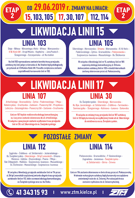 Ponadto, dla linii 114 zlikwidowane zostaną przejazdy przez ulicę Orląt Lwowskich. Na to konto linia 112 poprowadzona zostanie kółkiem przez osiedle Świętokrzyskie i osiedle Na Stoku.